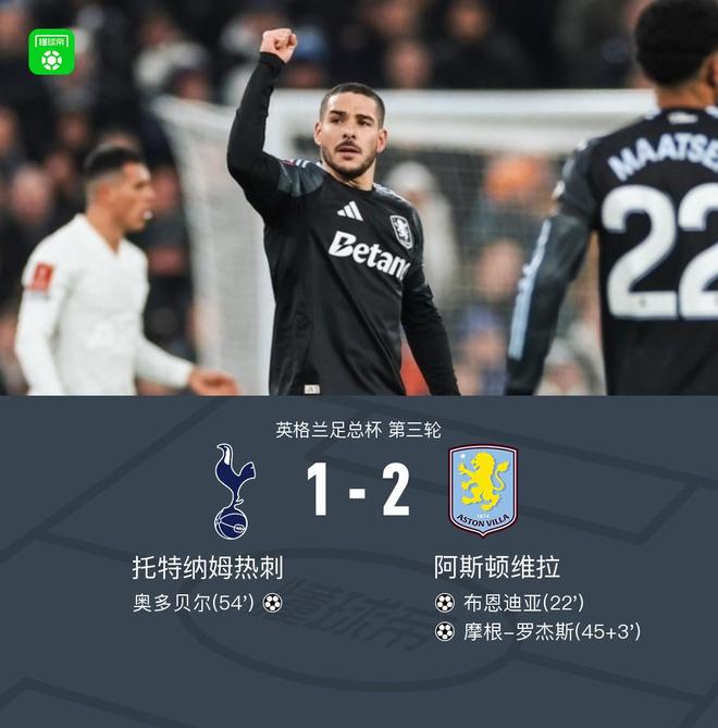 晋级32强!足总杯-维拉2-1客胜热刺 罗杰斯建功布恩迪亚传射