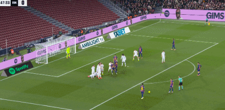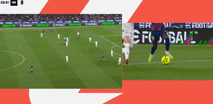 第40分钟,亚马尔精彩突破后传中变线,费兰倒钩打门偏出