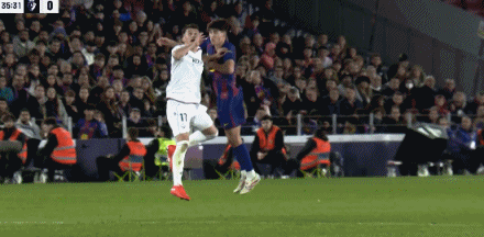 第53分钟,加西亚滑铲抢球时,被奥罗斯踩到脚踝
