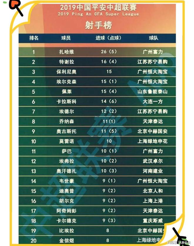 在前20名的射手榜单中都没有一名中国球员(不考虑归化),这就不得不说我们的本土前锋是多么的乏力。
