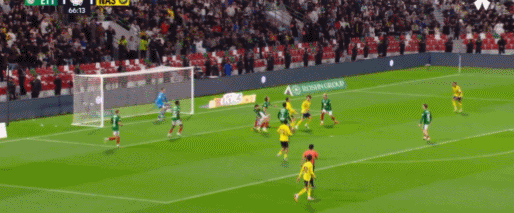 1分钟后,布罗佐维奇开出角球,C罗头球摆渡,菲利克斯包抄射门打飞;第35分钟,加奈姆外围一脚远射,球击中门框弹出!第42分钟,C罗门前接球推射滑门而过;半场结束前,科曼的近距离头球又擦着立柱偏出。