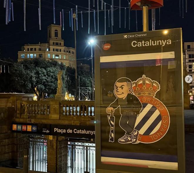 攻占巴塞罗那?西班牙人球迷在全城公交车站张贴近200张海报