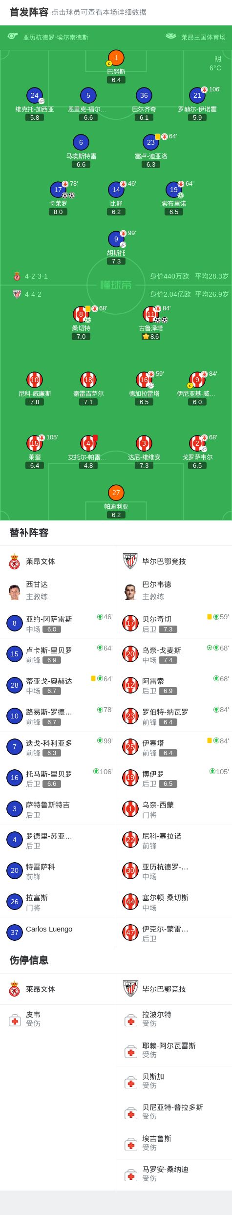 第104分钟,毕尔巴鄂竞技球员乌奈-戈麦斯罚入点球。